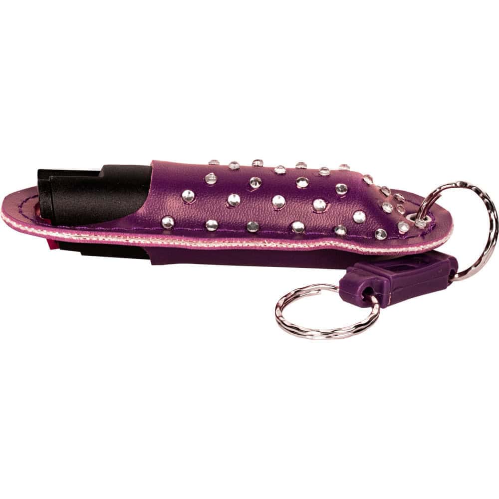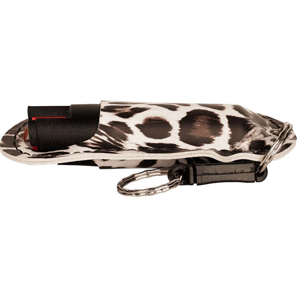 Pepper Shot 1.2% MC 1/2 oz Halo Holster and quick release keychain black. Pepper Shot Pepper Spray is made with 1.2% Major Capsaicinoids. The Major Capsaicinoids are the true heat measure and Pepper Shot 1.2% MC is more effective than of most other pepper sprays. In addition to causing an attacker pain, The Pepper Shot 8.5% oleoresin capsicum formula swells the mucous membranes, which makes breathing difficult, and swells the veins in the eyes, causing the eyes to close. It’s made from 2,000,000 SHU’s of raw pepper and these effects can last up to 45 minutes and cause no permanent damage. Has a UV identifying dye to help aid in the identification of an attacker.
